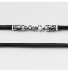 Кожаный шнур с серебряным замком - Лапти (4 мм)
